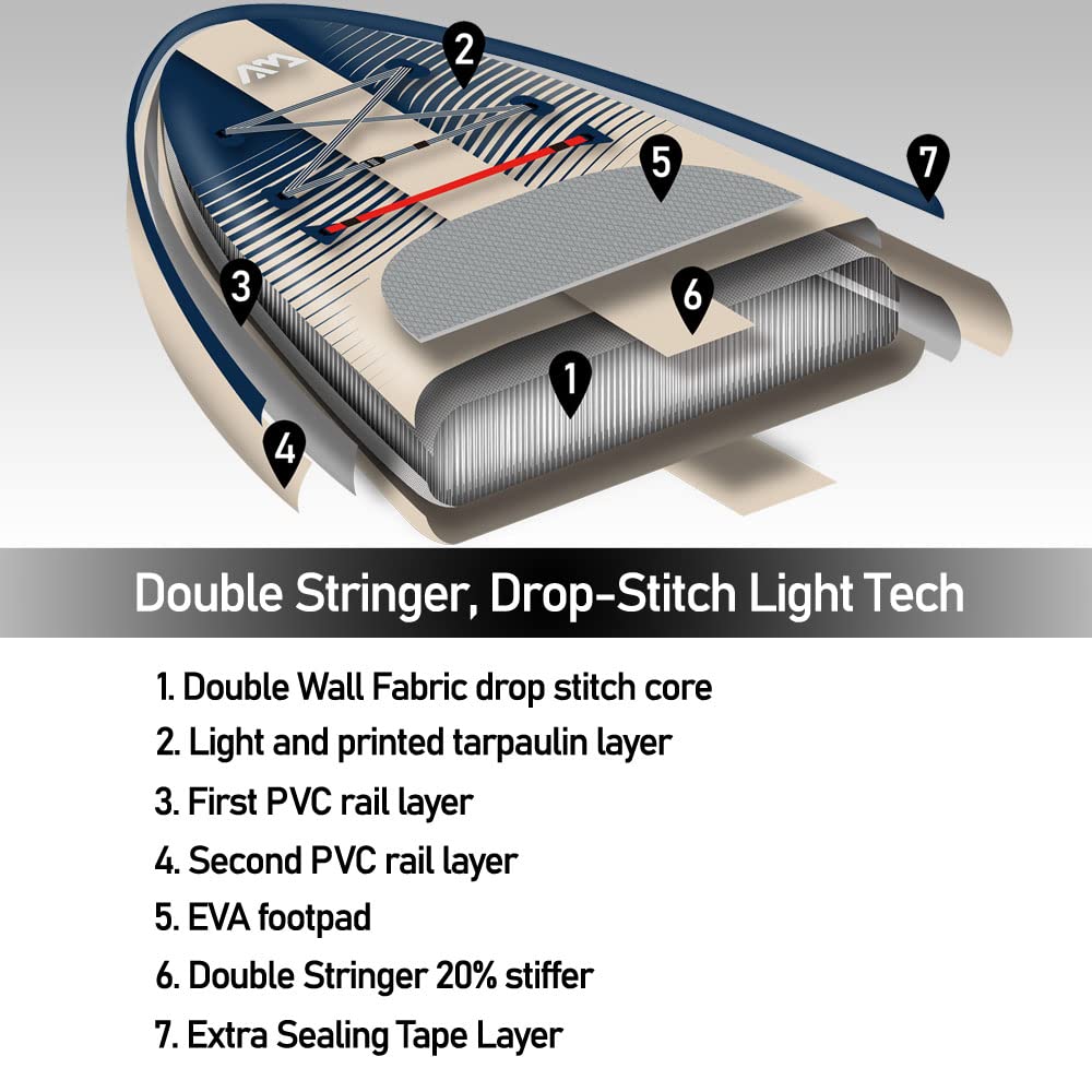 Einzelheiten: Der neue Magma verfügt über großzügigeres Volumen und Nutzlast, die für diejenigen geeignet sind, die eine einfachere Fahrt und mehr Gepäck tragen möchten. Das komfortable diamantgerillte Sandwellen-Außen-Fußpolster bietet zusätzlichen Halt, während der verstärkte D-Ring aus Edelstahl für eine sichere Fahrt in kleinen Wellen sorgt. Konstruiert mit Aqua Marinas exklusiver Doppelstringer-Technologie, ist der MAGMA 20% steifer mit außergewöhnlicher Steifigkeit.