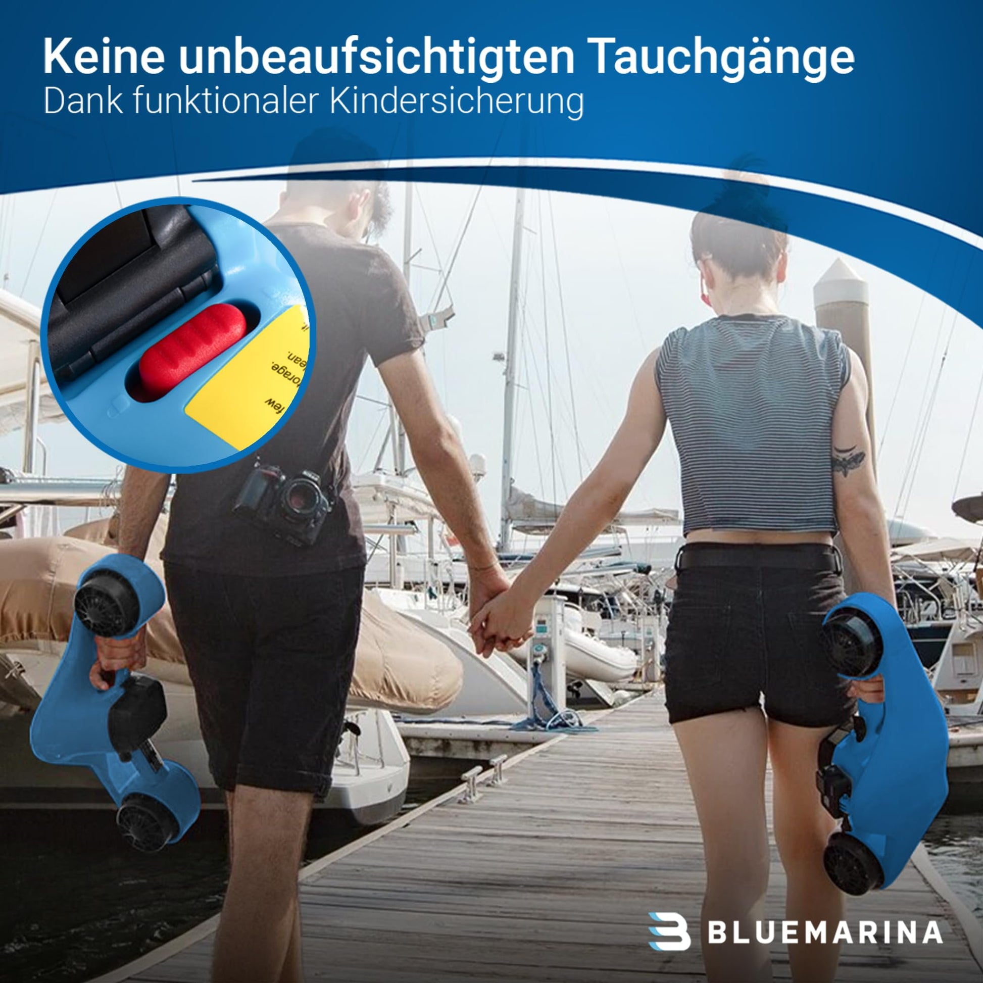 - ✔ Original Bluemarina Tauch Scooter Orca ✔ Wasserscooter extrem ✔ Bis 30 Meter Tauchtiefe ✔ Action-Cam-Halterung ✔ Ab 14 Jahren ✔ Anfänger und Fortgeschrittene ✔ Schnorcheln ✔ Seabob