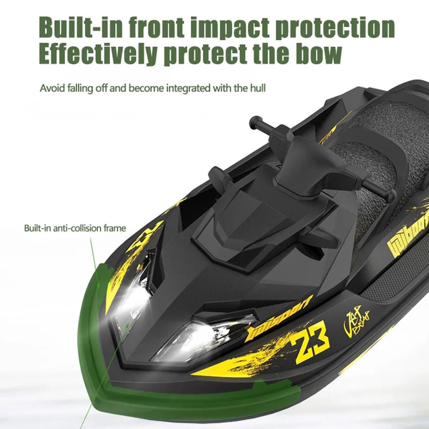 - 【HIGH SPEED RC BOAT】RC Jet Ski kann Geschwindigkeiten von bis zu 25MPH auf dem Wasser erreichen, dieses Hochgeschwindigkeits-RC-Boot kommt mit einer 2,4GHz-Fernsteuerung mit einer Signalreichweite von 100 Metern.