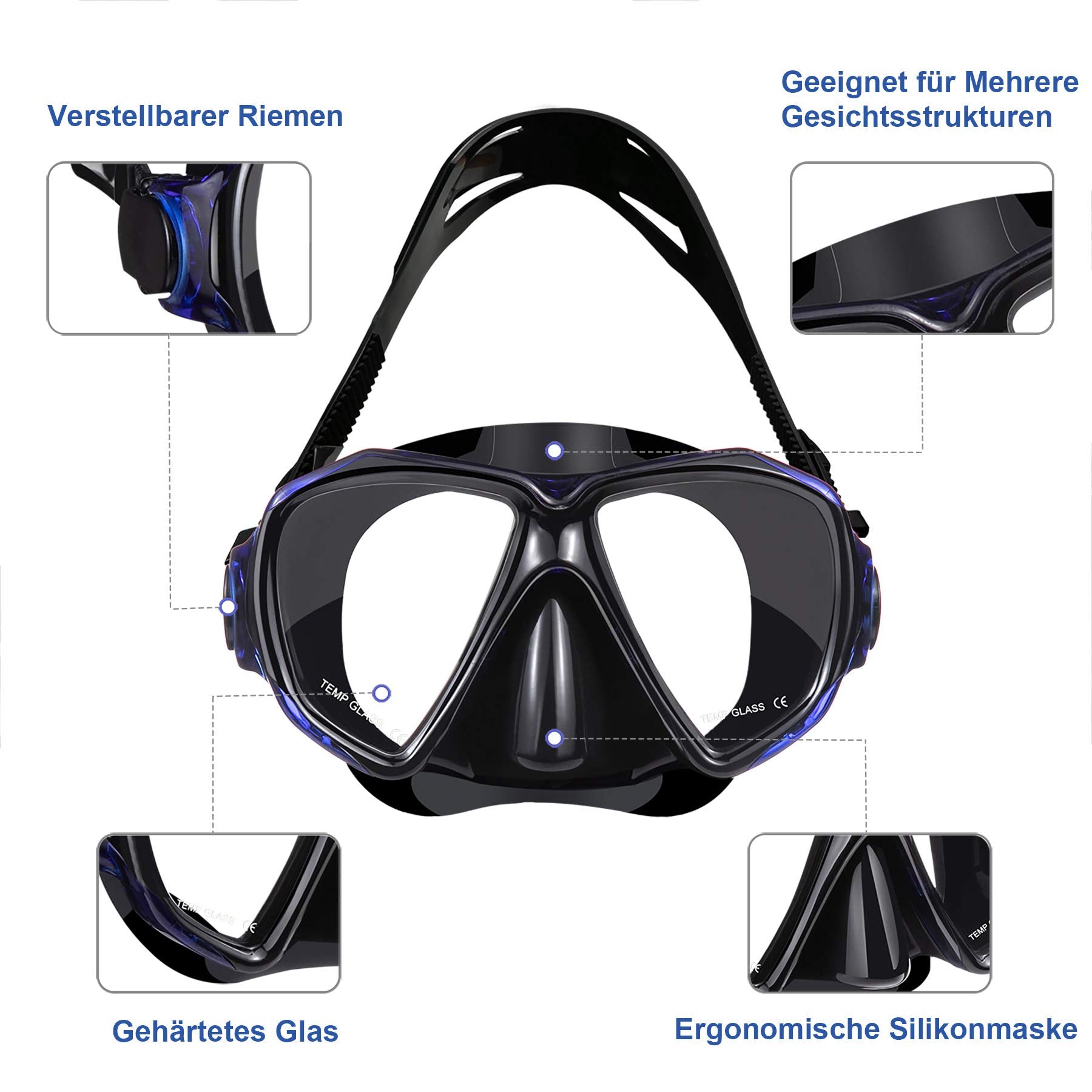 Dorlle Schnorchelset, Anti-Fog & Anti-Leck, mit Dry-Schnorchel, für Erwachsene, Schwarz/Blau
