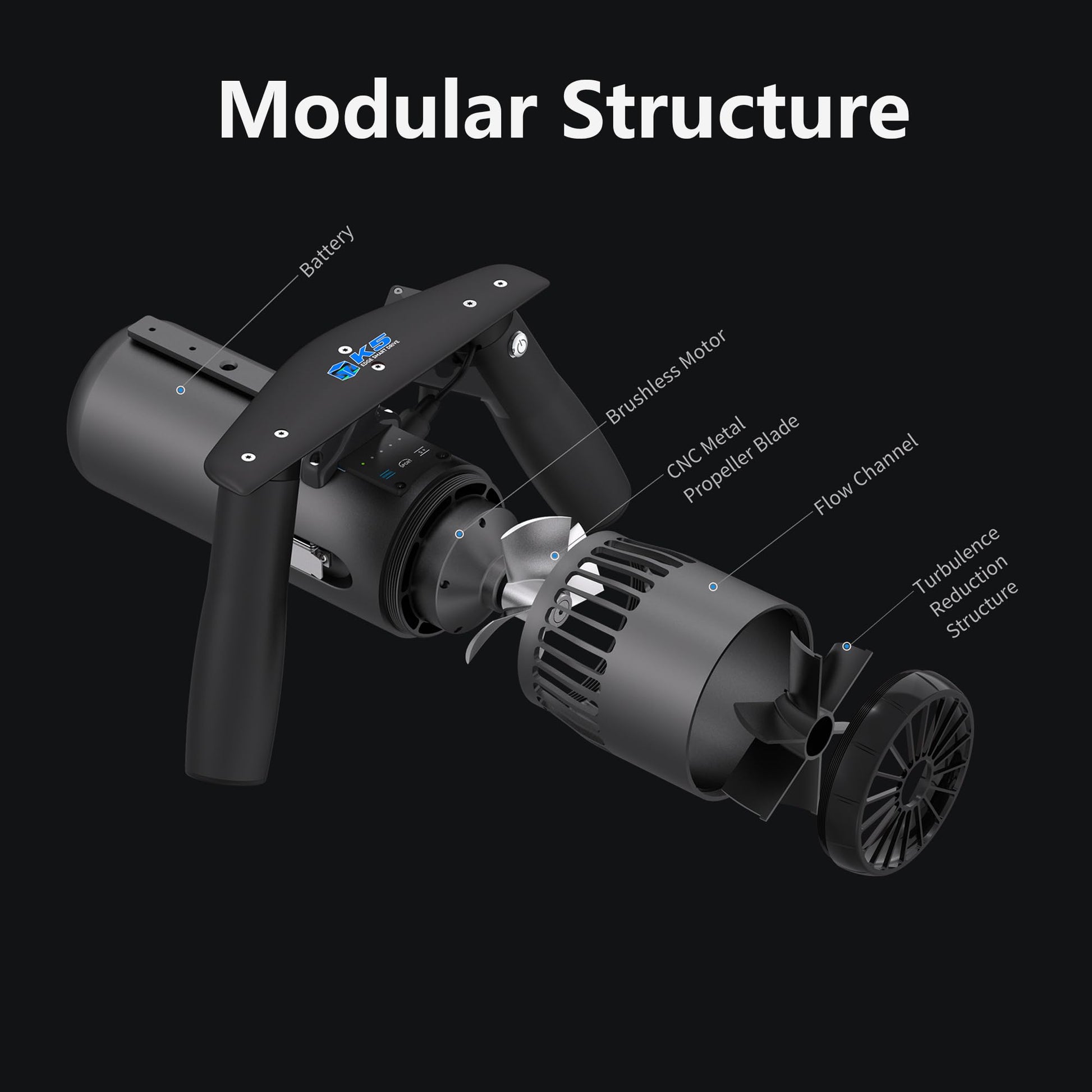- 【MODULAR & SALZKORROSIONSBESTÄNDIG】 Metallgehäuse, abrieb- und druckbeständig; Proportionale Drosselklappe, unterstützt freies Starten und Anhalten sowie Tempomat; Modulares Design zum schnellen Auseinandernehmen/Kombinieren. Der underwater seascooter elektro verwendet modernste Antikorrosionstechnologie, die komplexe Wartungsarbeiten eliminiert.