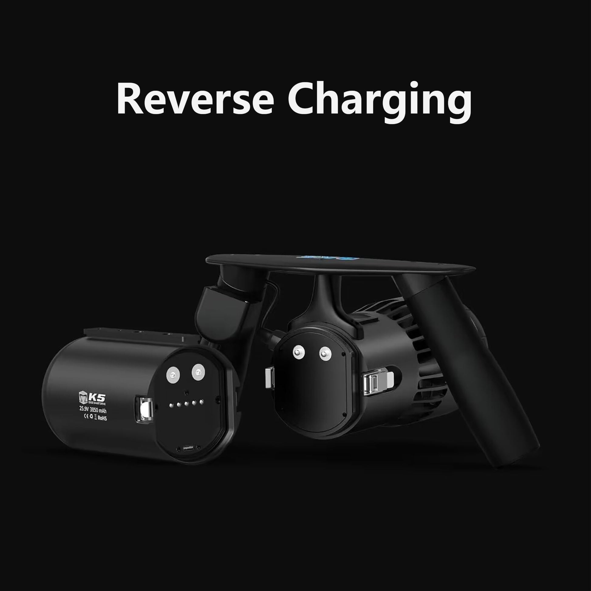 - 【EIGENES BATTERIESYSTEM】 Der elektrischer unterwasser seescooter verwendet die PD100W-GaN-Ladetechnologie, mit der der Akku in nur 1,5 Stunden vollständig aufgeladen werden kann, sodass Sie bis zu 60 Minuten lang durch das Wasser gleiten können. Laden Sie elektronische Geräte überall und jederzeit mit 100W Rückwärtsladen auf.