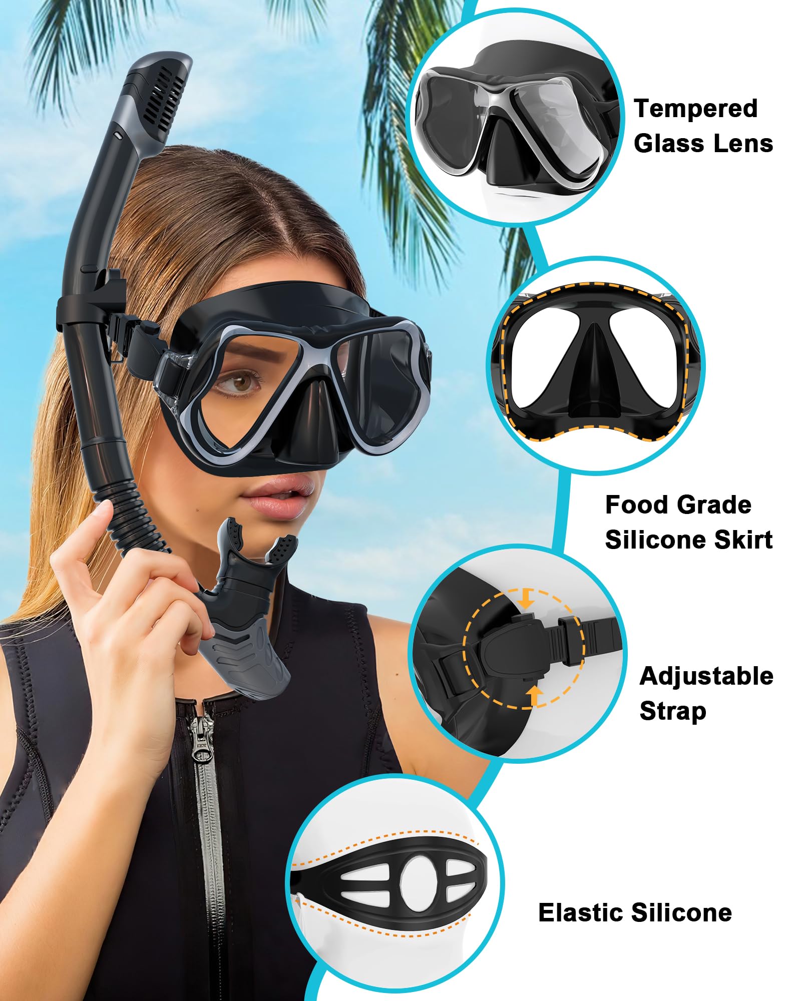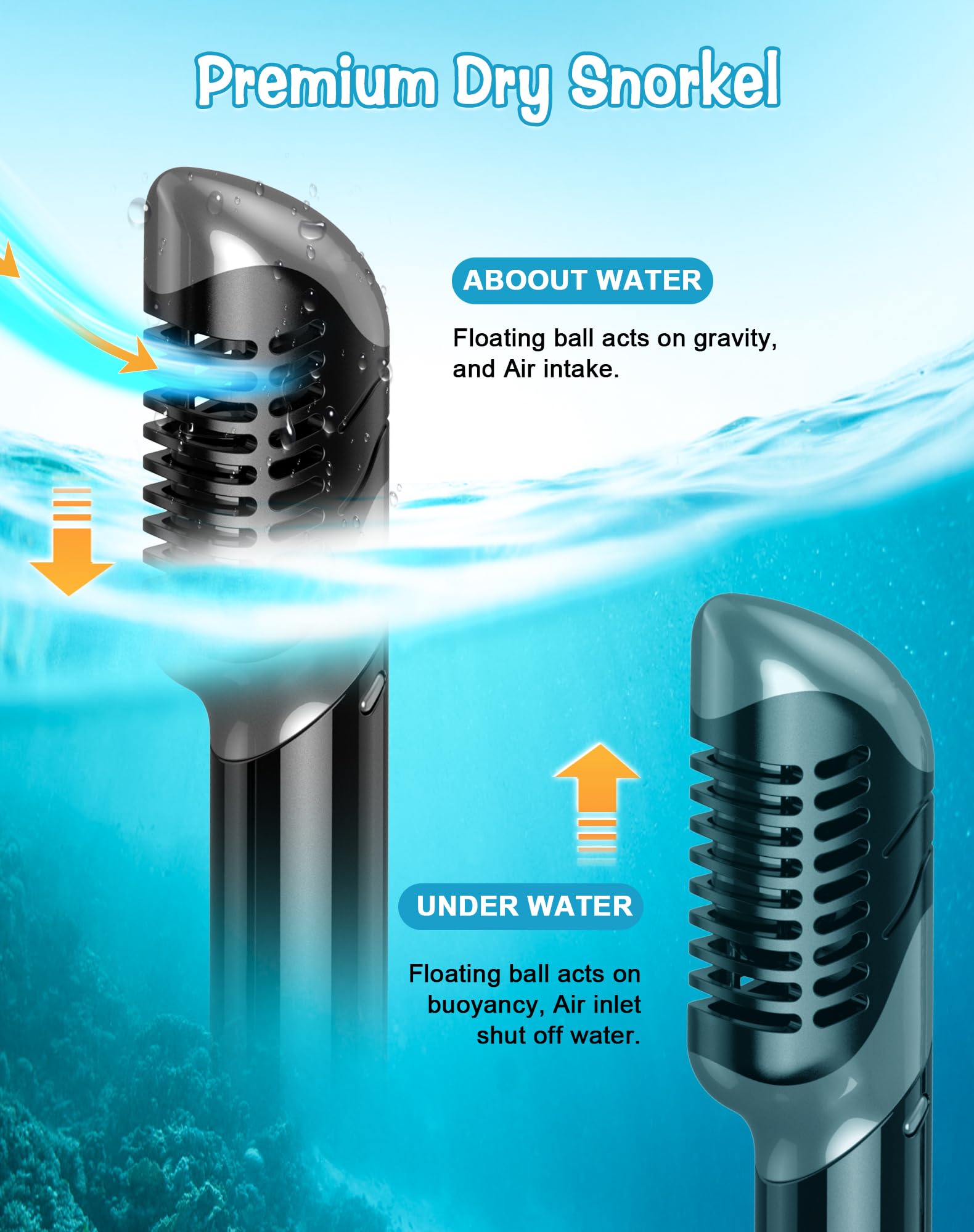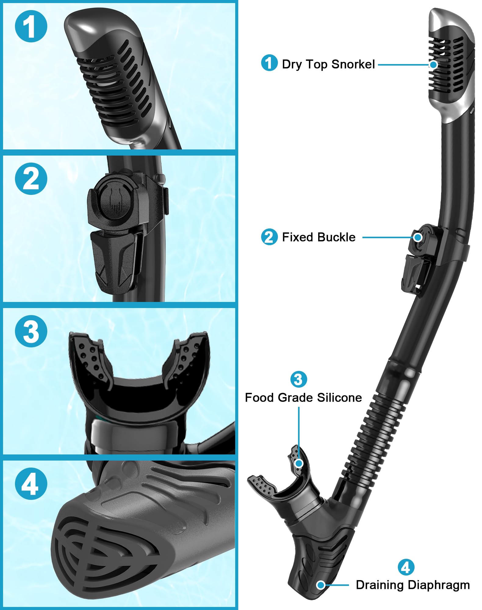 - Leicht zu atmender Trockenschnorchel: Atmen Sie frei unter Wasser mit unserem fortschrittlichen Trockenschnorchel. Der Schnorchel verhindert automatisch das Eindringen von Wasser, wenn Sie eintauchen. Dies wird Ihr Schnorchelerlebnis revolutionieren und Ihnen ermöglichen, frei zu atmen.
