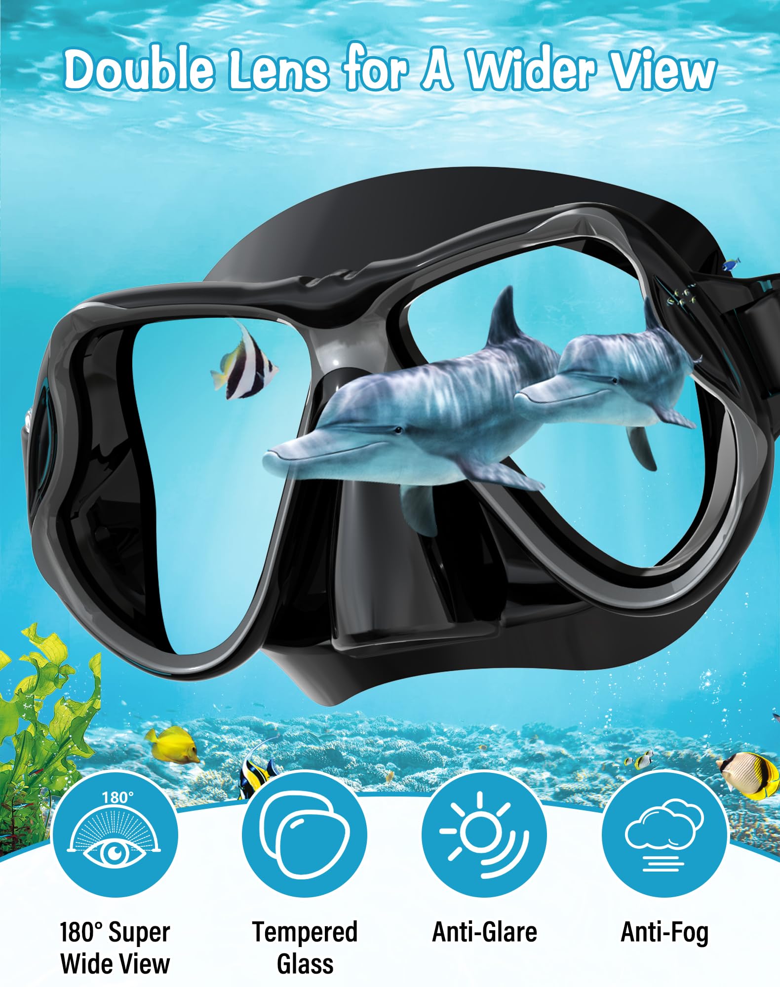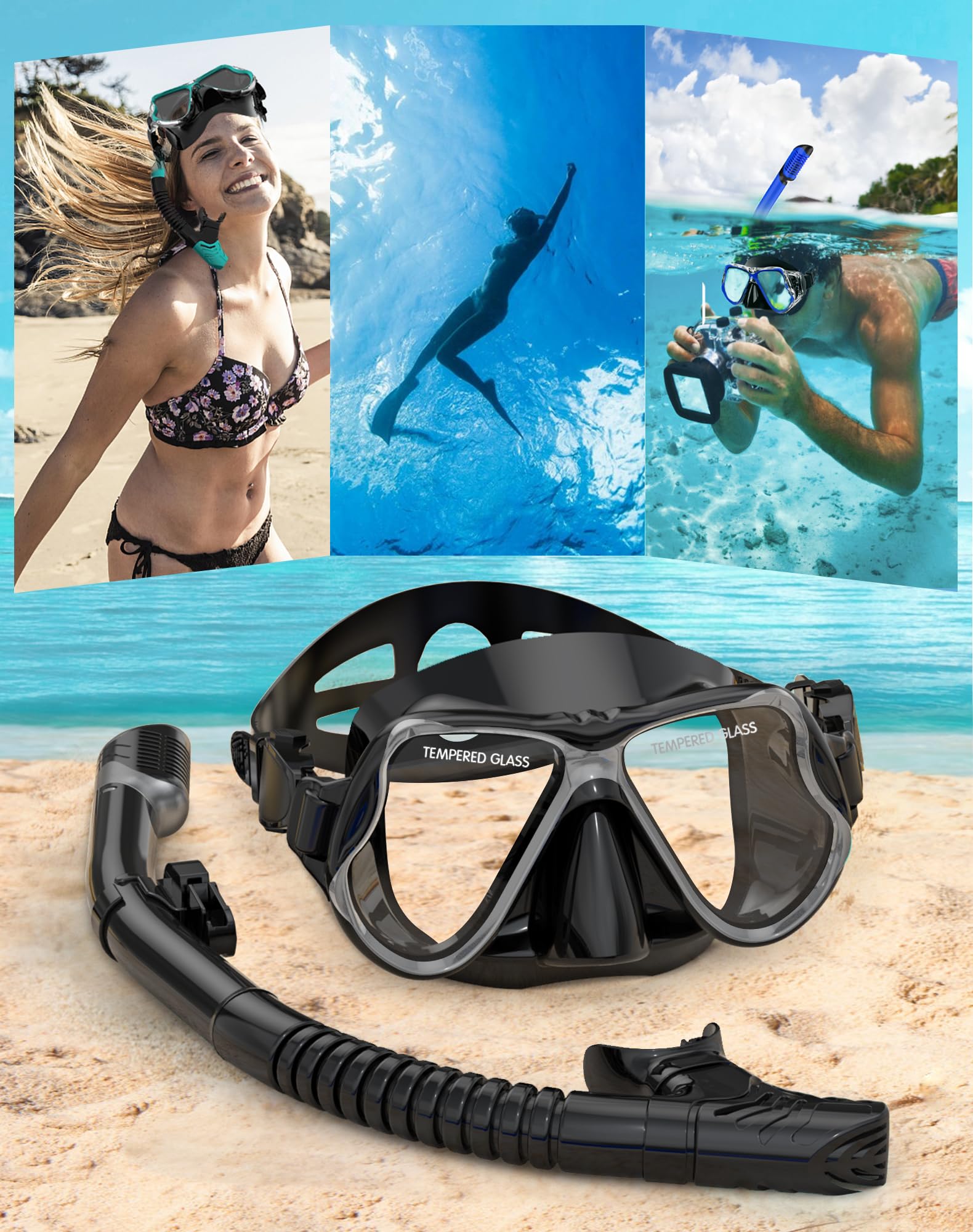 - Anti-Beschlag und klare Sicht: Die Tauchmaske aus hochwertigem, gehärtetem Glas befreit Sie von der Sorge des Beschlagens beim Tauchen. Die Gläser aus gehärtetem Glas halten nicht nur dem Wasserdruck beim Schnorcheln stand, sondern bieten auch eine kristallklare Sicht unter Wasser.