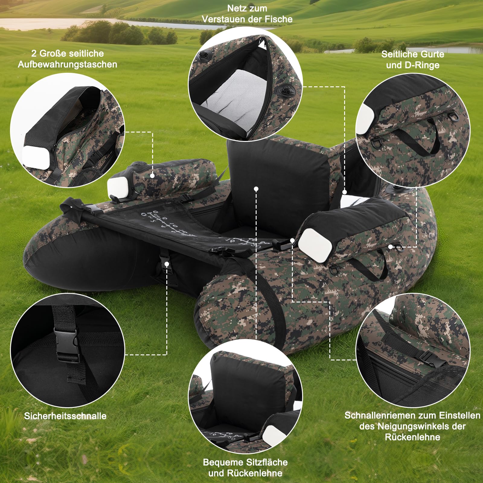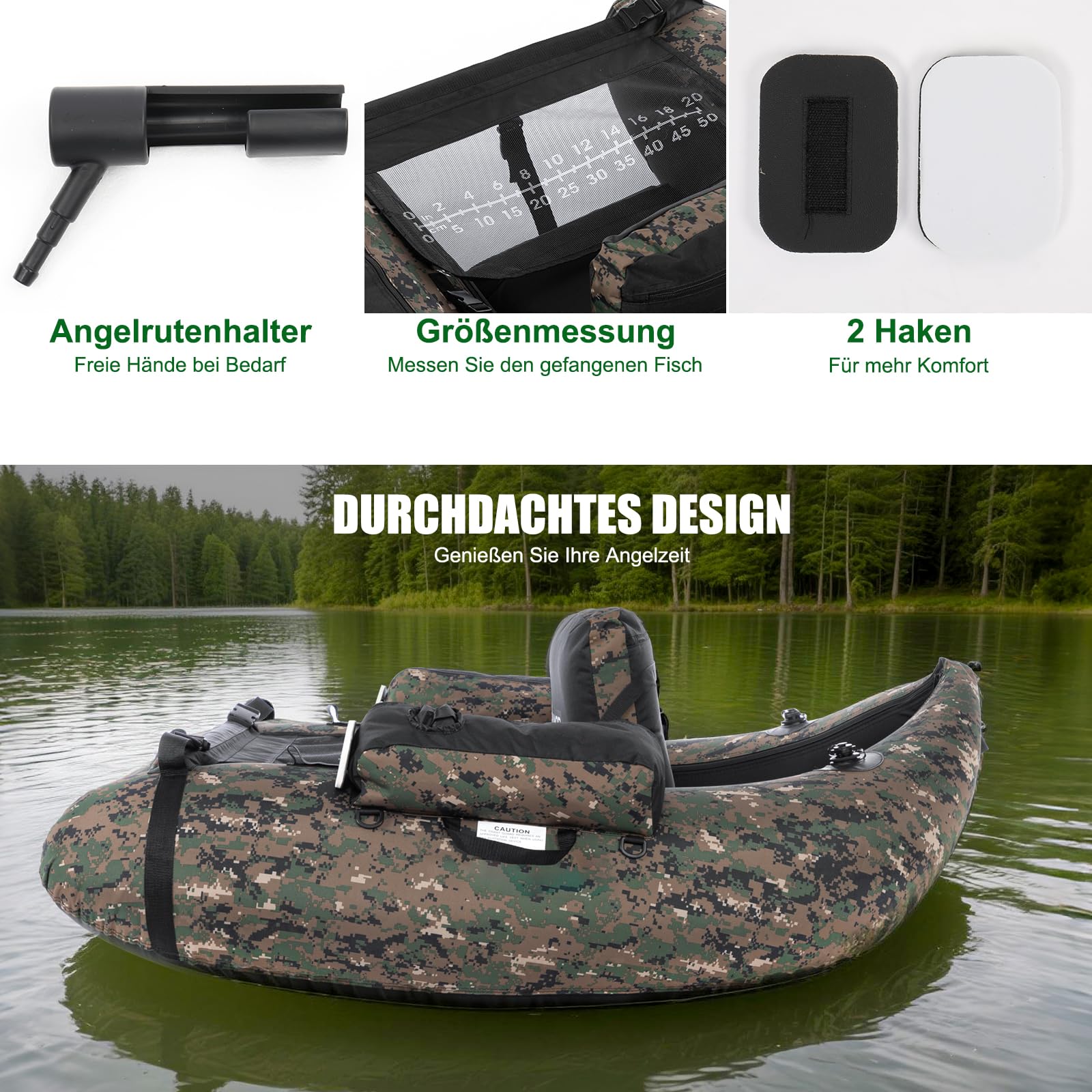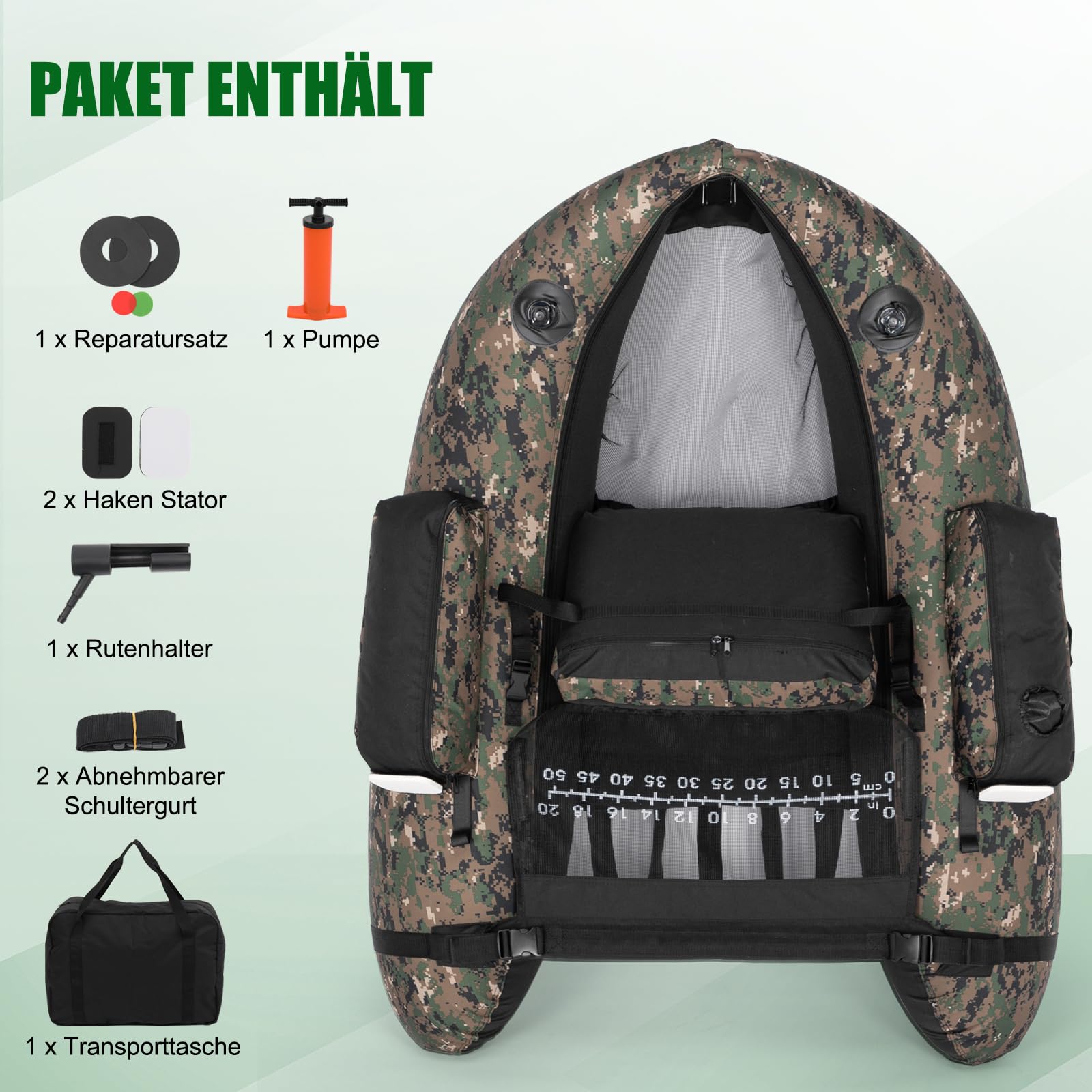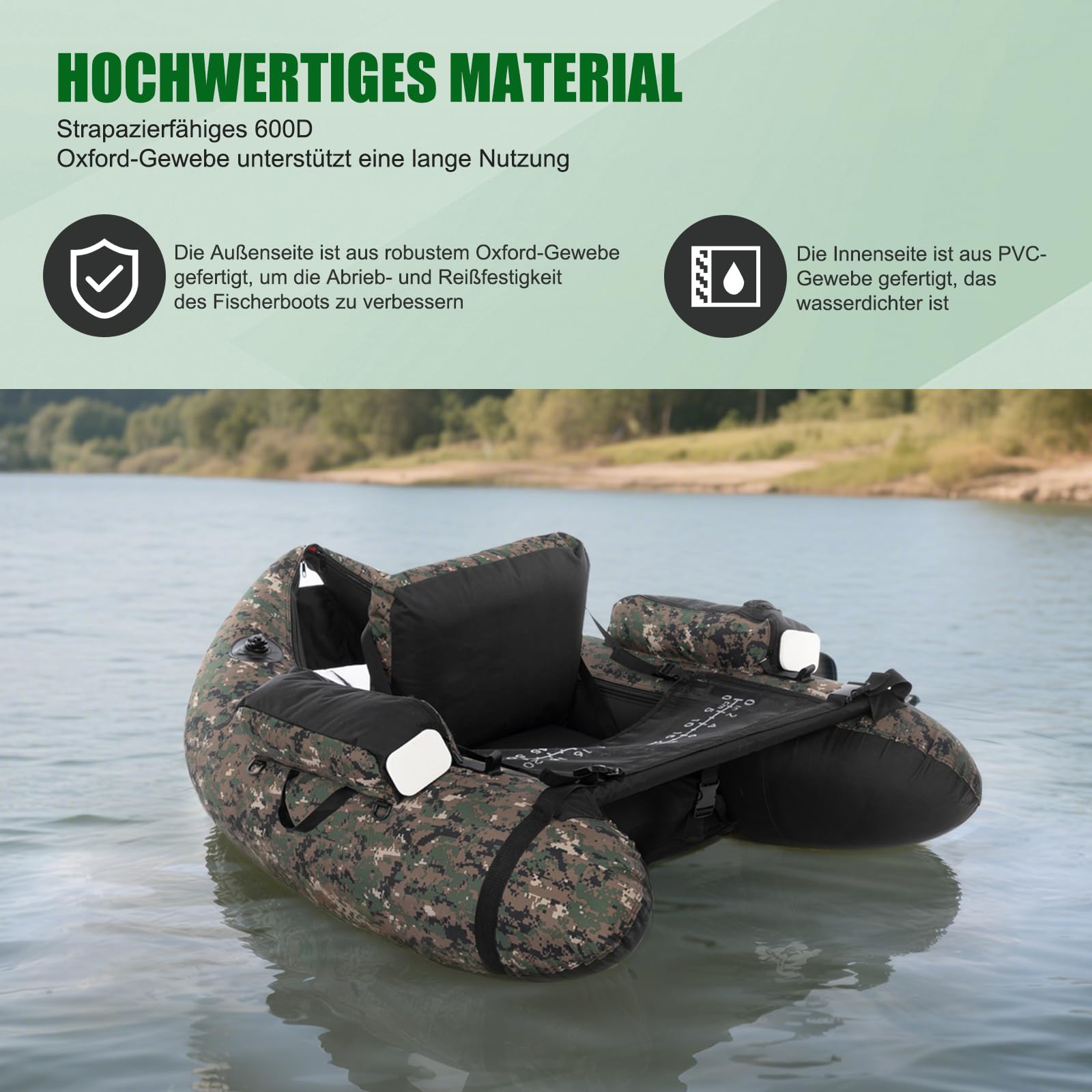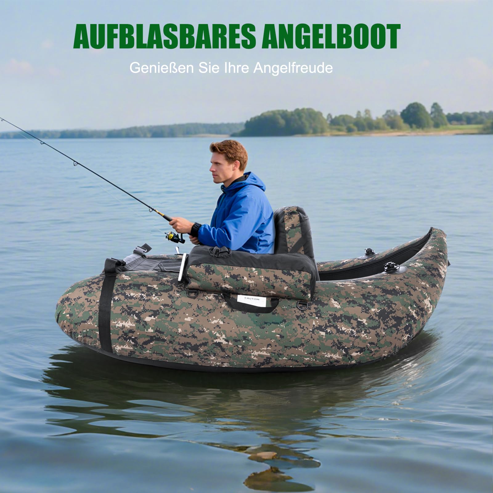 LEADZM aufblasbares Angelboot, Camouflage, 150 kg Tragkraft